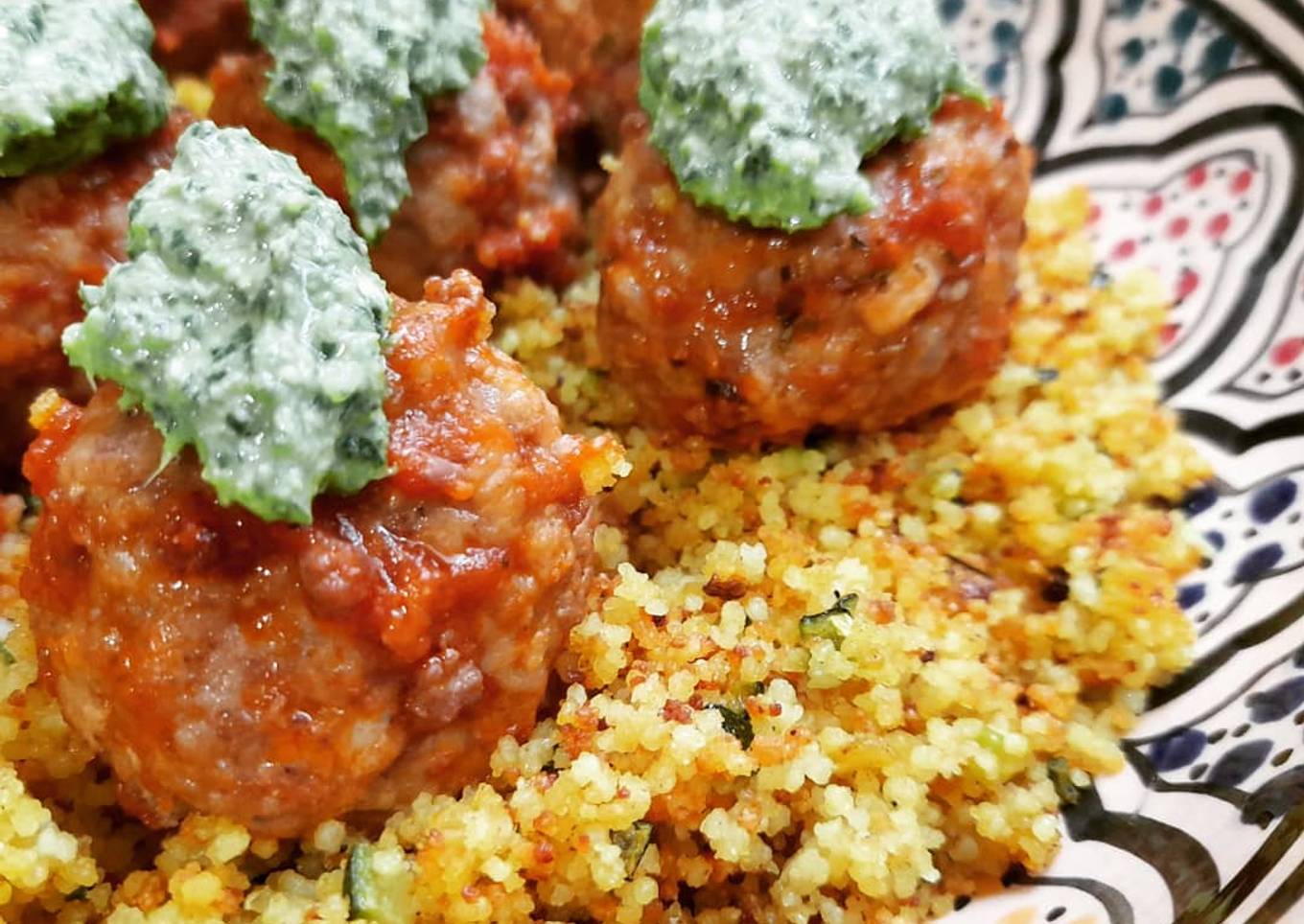 Albóndigas al pesto con cous cous al Ras el-hanout
