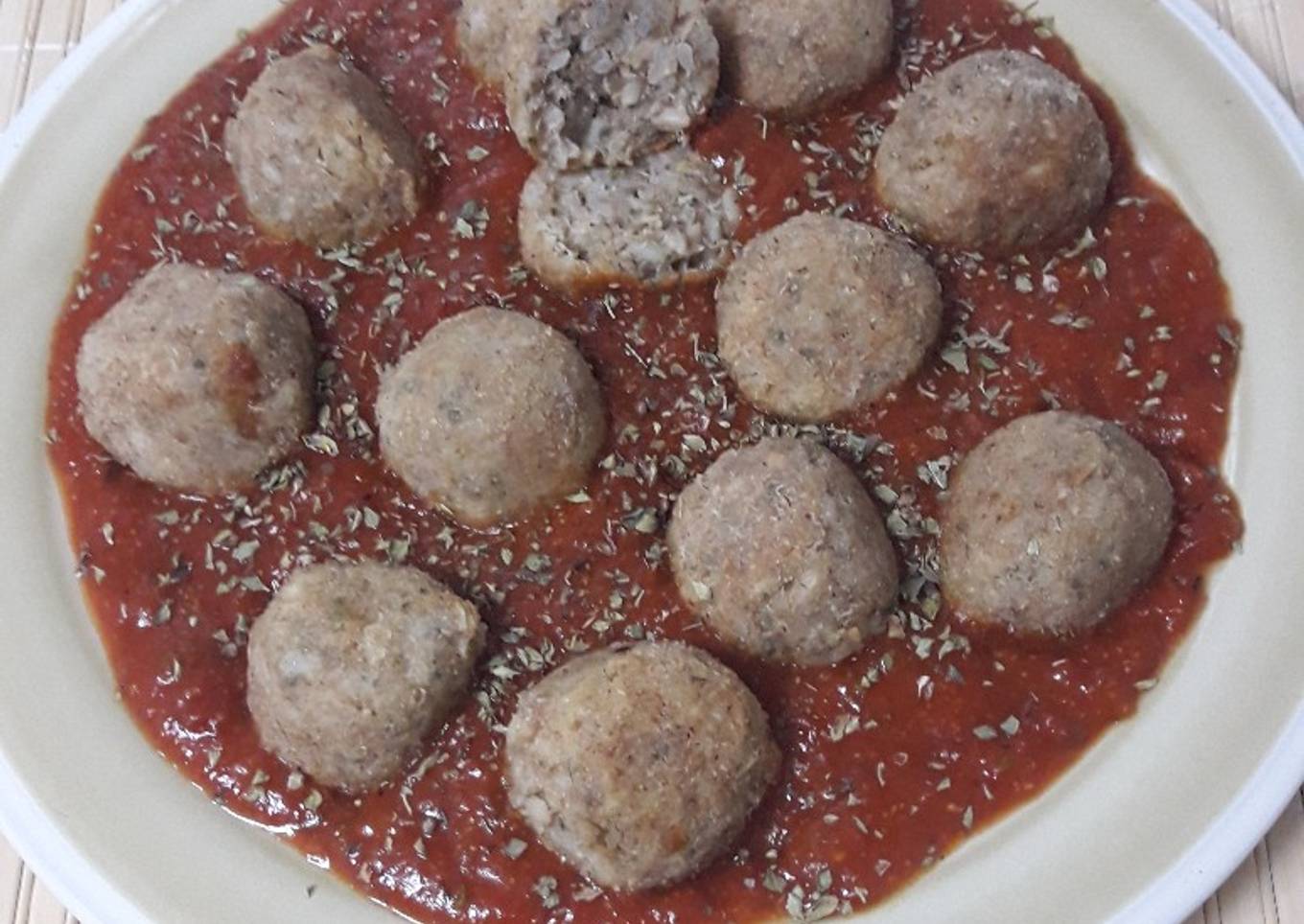 - Servimos las albóndigas calientes acompañadas de la salsa de tomate también caliente.