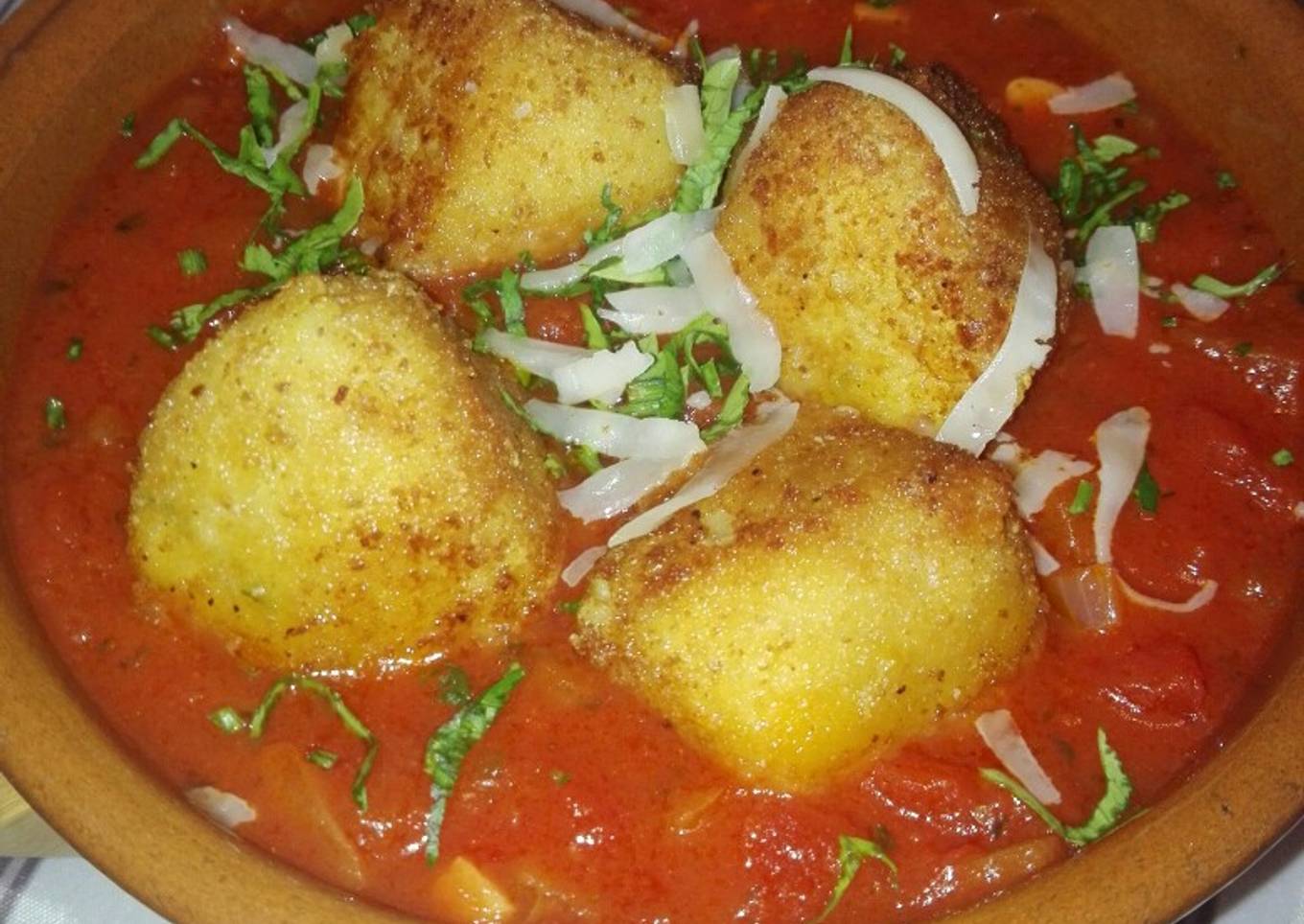 Albóndigas de bacalao al azafrán en salsa de tomate