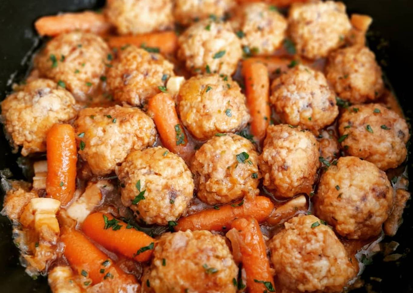 Albóndigas de calamar con panceta ibérica y zanahorias