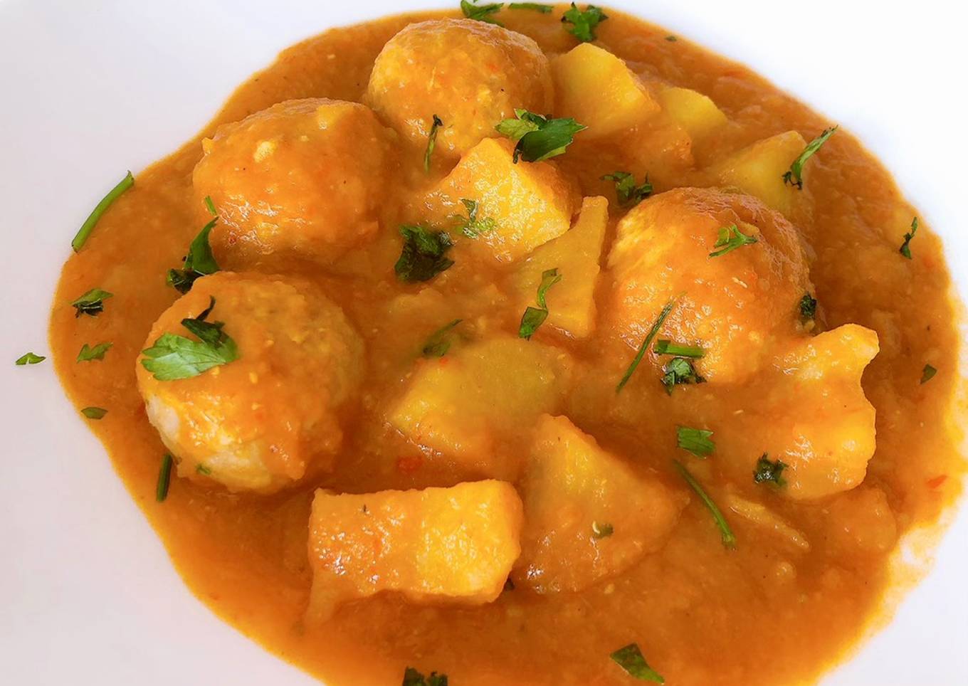 He usado albóndigas ya hechas de pollo, aunque las puedes hacer tú mismo súper fácil . Hay recetas buenísimas de los usuarios de cookpad .