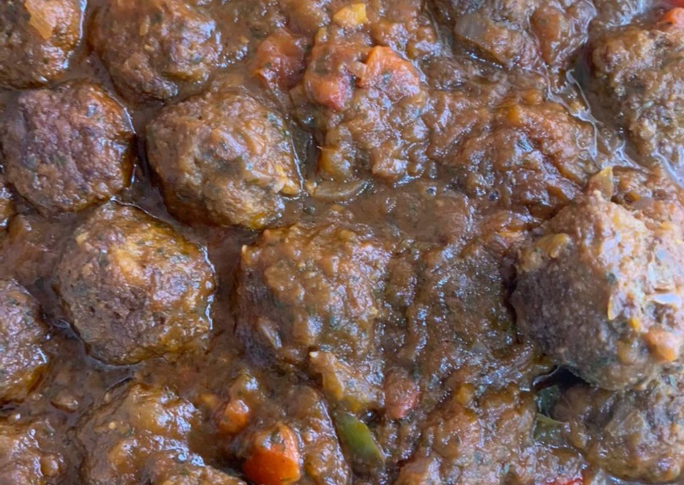 - Para la salsa pongo en una sartén aceite para sofreír la cebolla con el ajo rallado, cuando está casi pinchada le echamos el pimiento rojo y el verde picado muy pequeño, cuando está casi hecho le ponemos el tomate y las especias que se haga bien y una cucharadita de azúcar para quitar el acidez del tomate 🍅 cuando el tomate ya está sofrito le echamos el vino y que reduzca un poco, una vez reducido echamos las albóndigas que haga chup chup y listo.