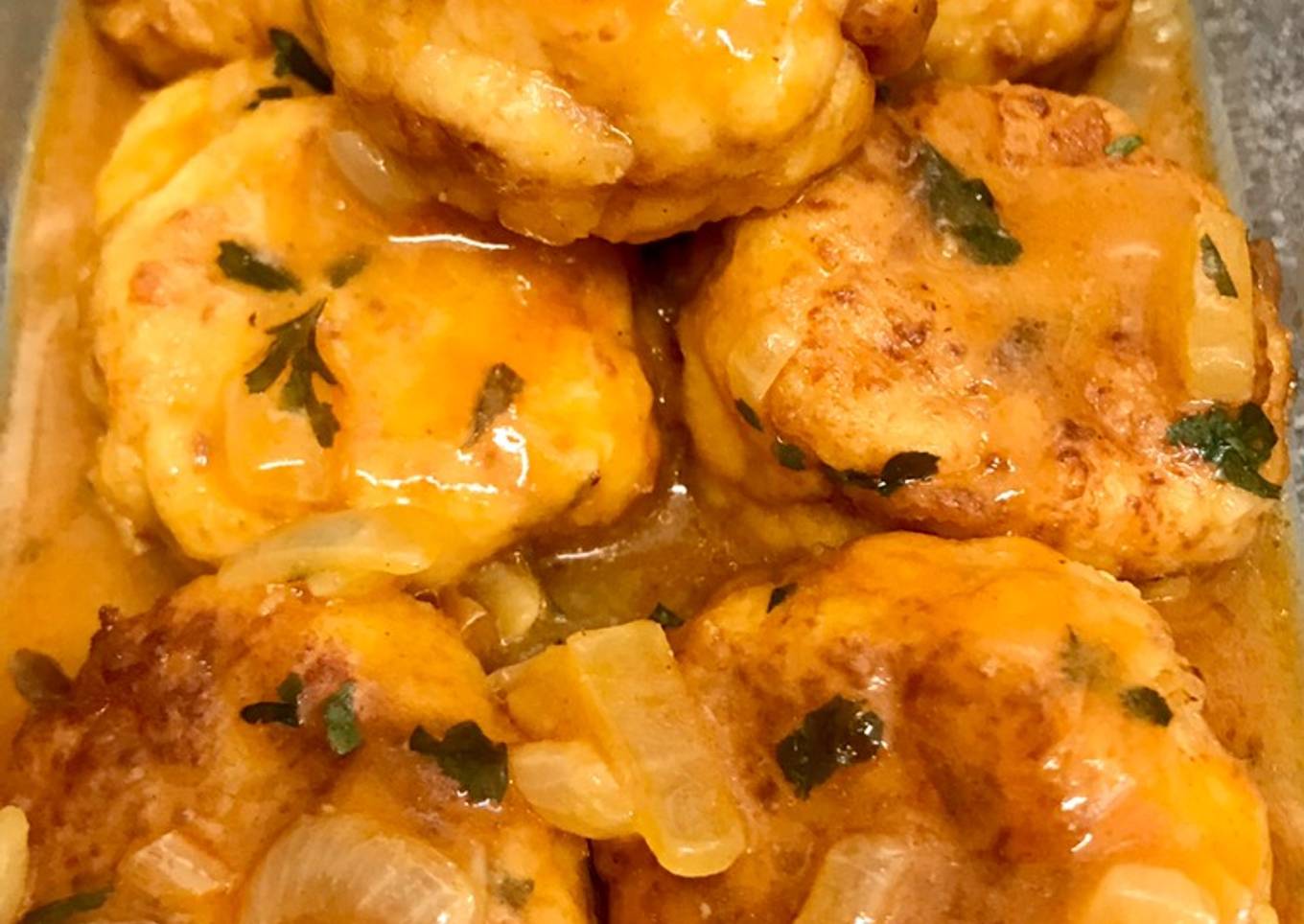 Alb贸ndigas de merluza y gambas en salsa de marisco y azafr谩n 馃拑