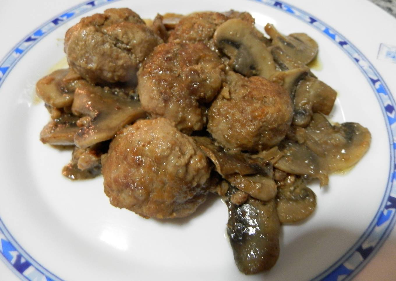 Albóndigas con setas estas de la foto son con champiñones porqué no tenia setas pero están ricas con cualquiera de los dos.