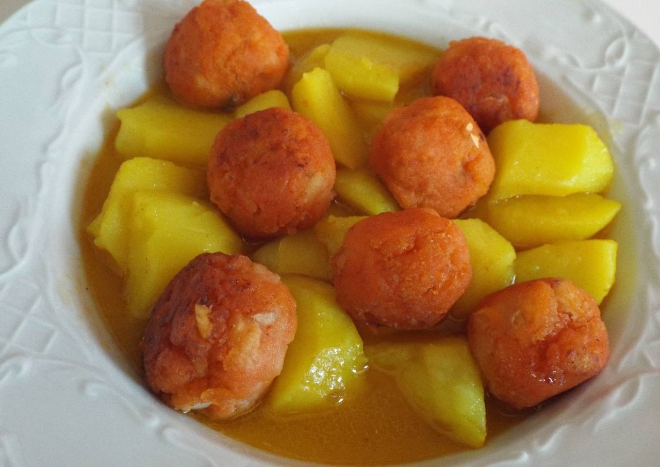 - Se sirven las patatas en el plato, colocando encima las albóndigas (como en la foto principal).
