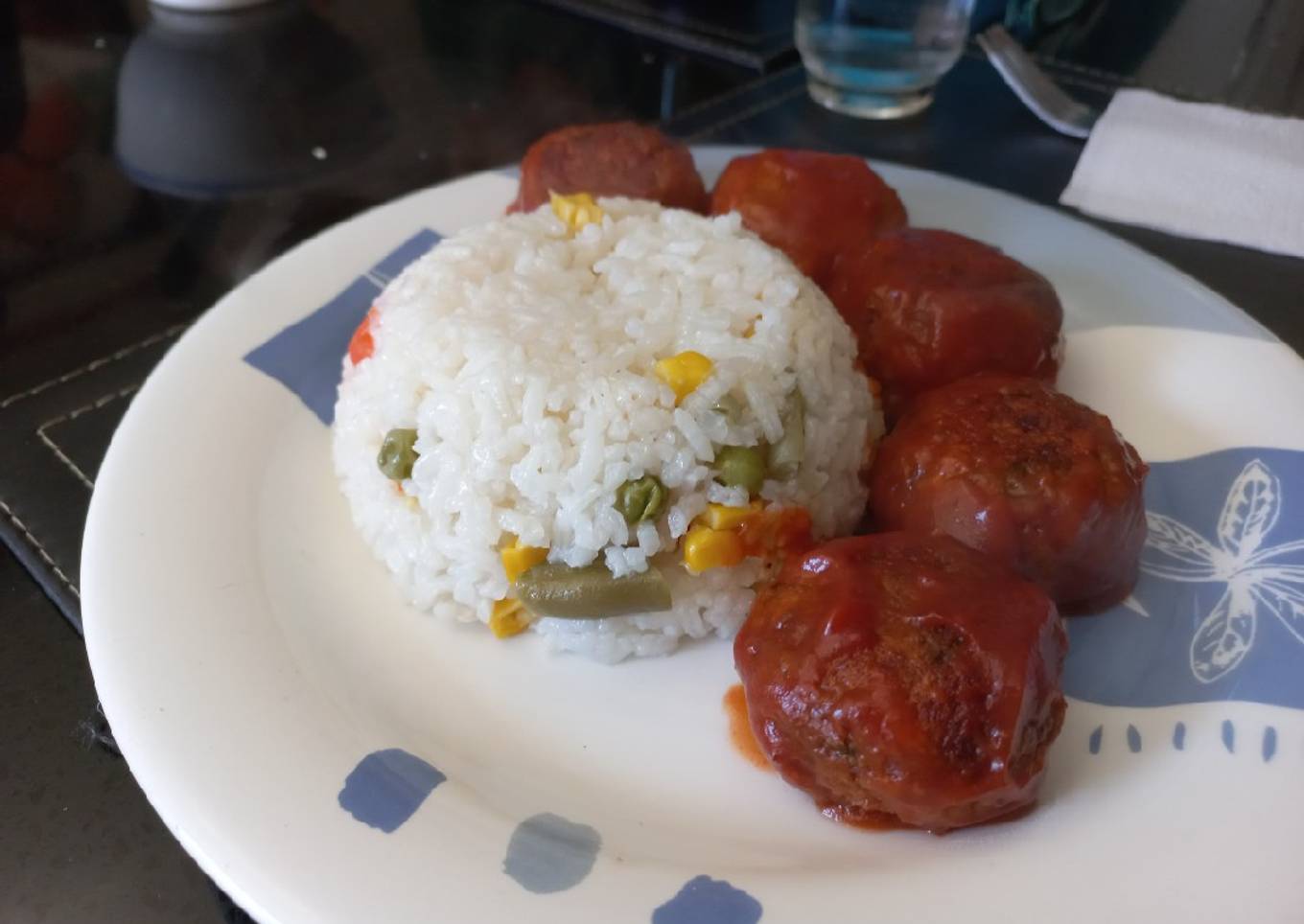 - Servimos con arroz y listo las albóndigas de jurel quedaron exquisitas se puede acompañar con ensalada también.