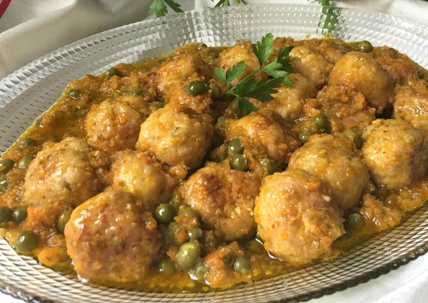 - Primero, partir o trocear la cebolla.Y rehogar con un poco de caldo de pollo.Después se echan las albóndigas y hay que estar unos veinte minutos dando vueltas para que no se peguen y cojan color.