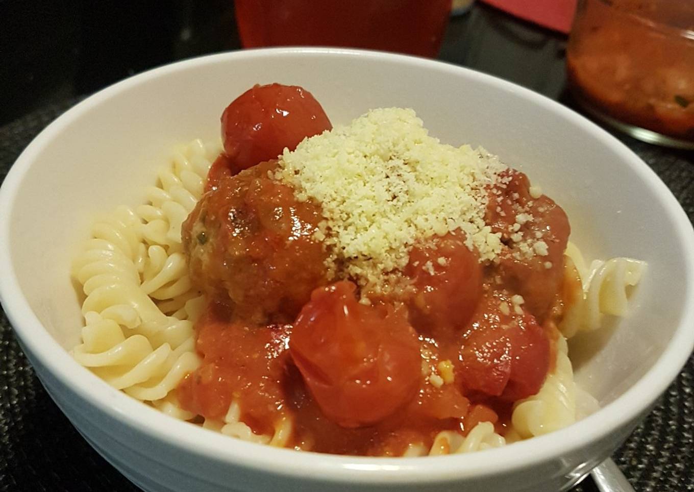 - Cocer las pastas y servir con las albóndigas sobre estas, espolvorear queso parmesano.